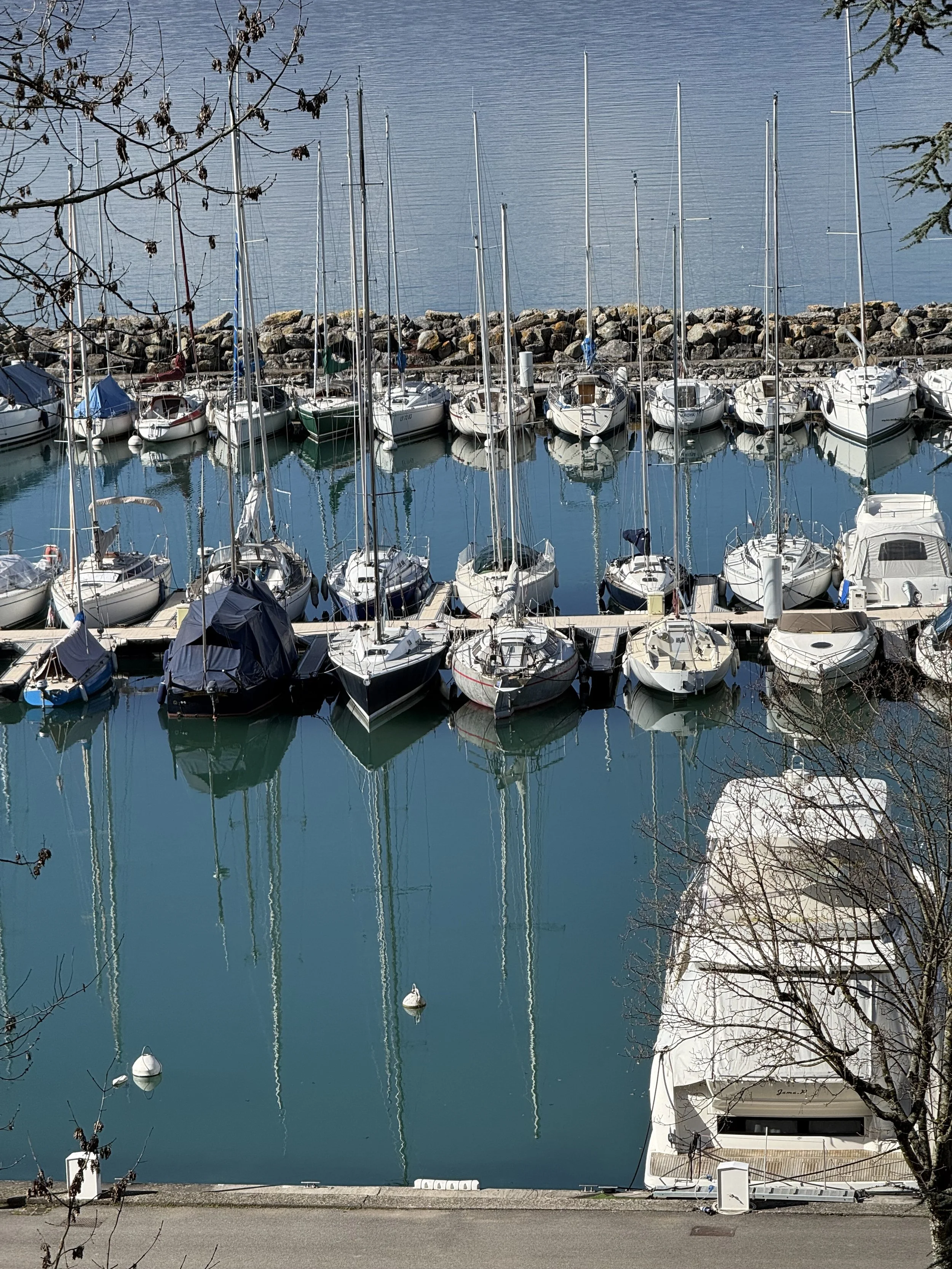 Walking away from the main town towards the marina, I found a café to sit and just be. On this occasion I was here on my own, as I had been visiting my daughter who lives in Geneva, but had taken a few days to explore on my own whilst she was working. There is something quite calming about spending time alone in a beautiful location, with few people around to spoil that peace. To just sit and listen to the sound of the waves lapping at the boats and the masts clinking in the breeze, it feels quite meditative. I felt clearer of mind, not as foggy-headed as normal, more rested and without the noise of everyday life.