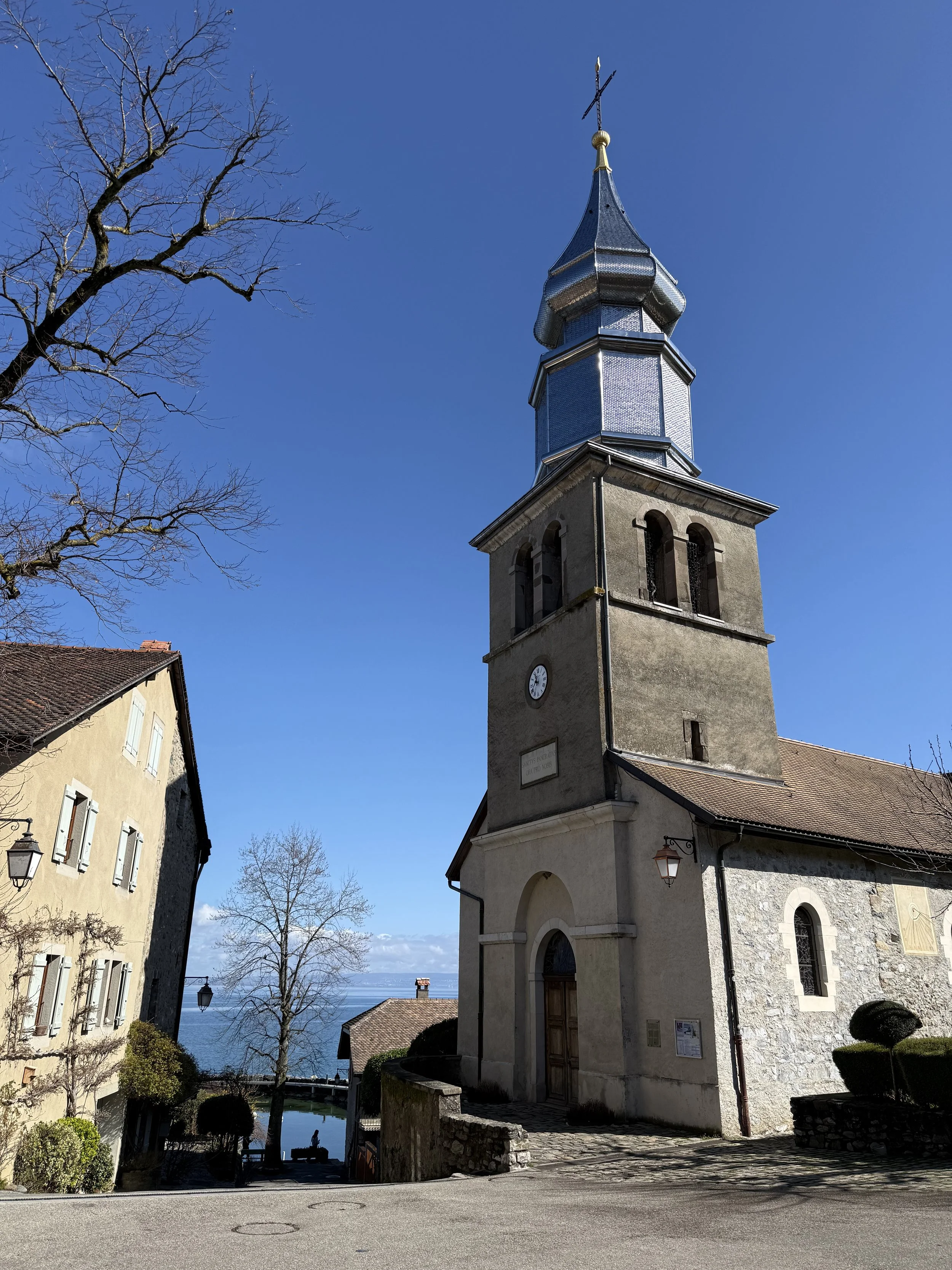 As you wander along the Grande Rue and onto Rue Paul Jacquier, you pass a choice of restaurants. I had a lovely Savoyard lunch at La Traboule, I would urge you to try the local perch fillets. As you continue, you will find art galleries and small artisan shops, before making your way to the main stone arched gateway, known as the Porte de Rovorée. Venture through these gates and you find yourself at the Place de la Mairie and town hall.